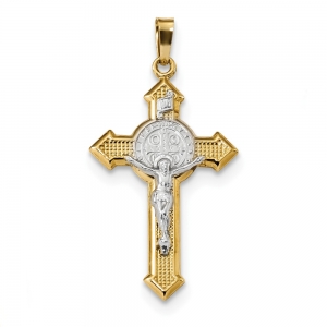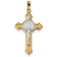 14k w/Rhodium Polished St. Benedict Medal INRI Crucifix Pendant