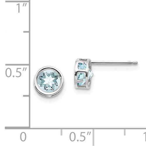 14k White Gold 5mm Bezel Aquamarine Stud Earrings