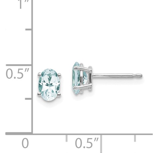 14k White Gold 6x4 Oval Aquamarine Post Earrings
