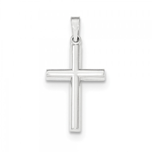 14K White Gold Brushed and Polished Hollow Latin Cross Pendant