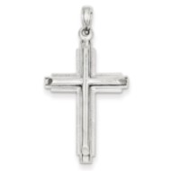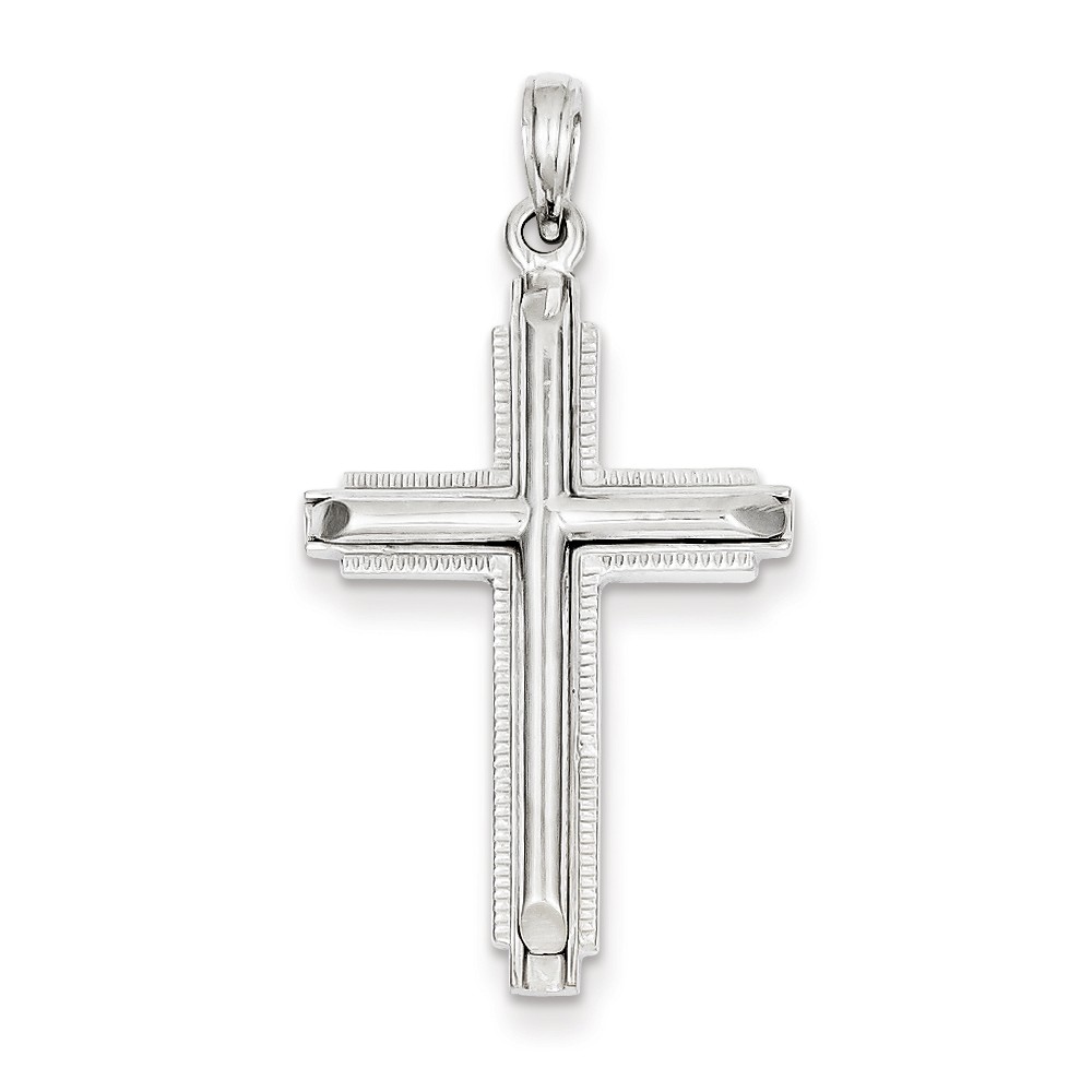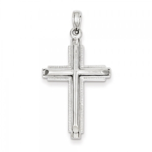 14K White Gold Cylinder Cross on Beaded Trim Frame