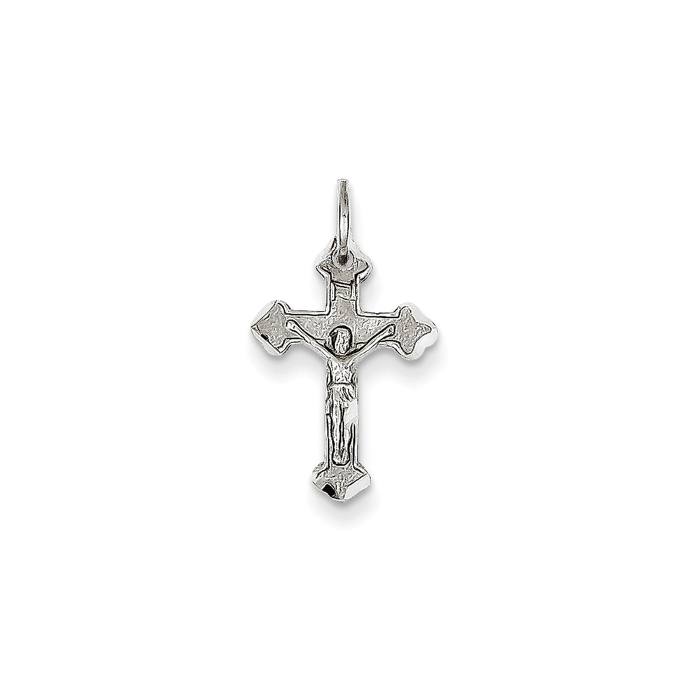 14k White Gold Diamond-cut Crucifix Charm