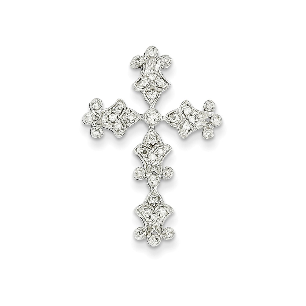 14k White Gold Diamond Filigree Cross Pendant