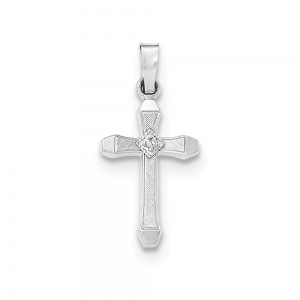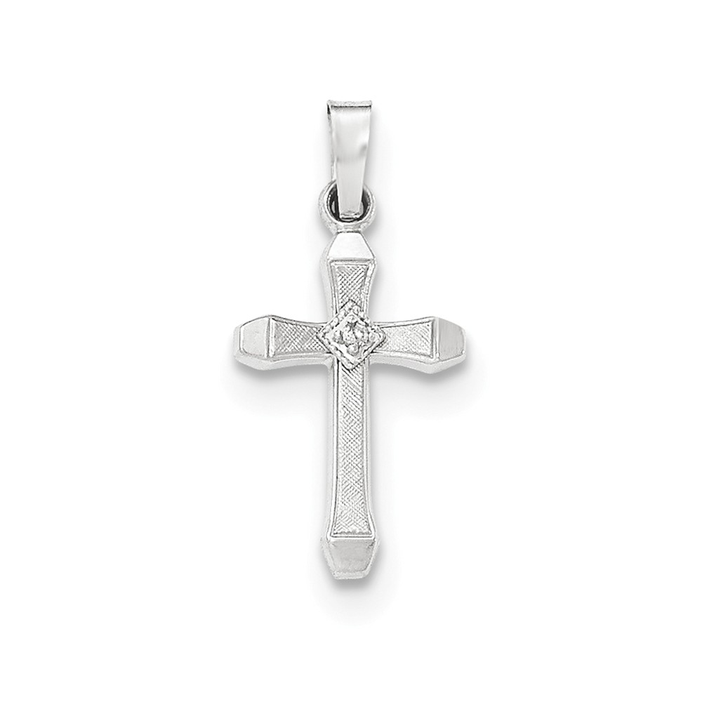 14K White Gold Diamond Textured & Polished Latin Cross Pendant