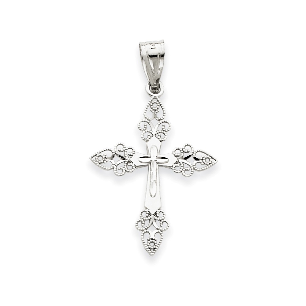 14k White Gold Filigree Cross Pendant