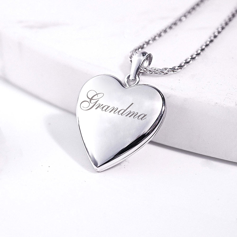 14k White Gold Grandma Heart Photo Locket