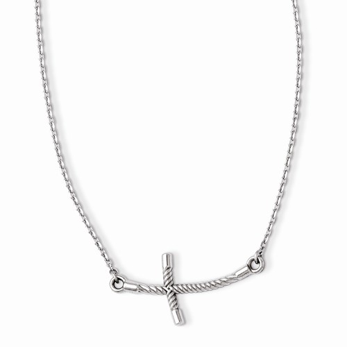 This beautiful 14K White Gold Sideway Twisted Cross necklace comes with an 19 inch necklace.