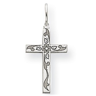 14k White Gold Laser Designed Cross Charm