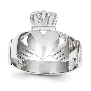 This ring is a 14k White Gold Men's Claddagh Ring and weighs 4.41 grams.