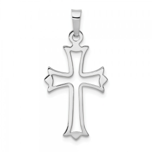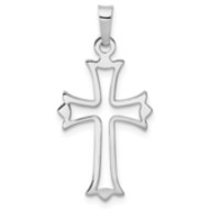 14k White Gold Polished Cut out Fleur de Lis Cross Pendant