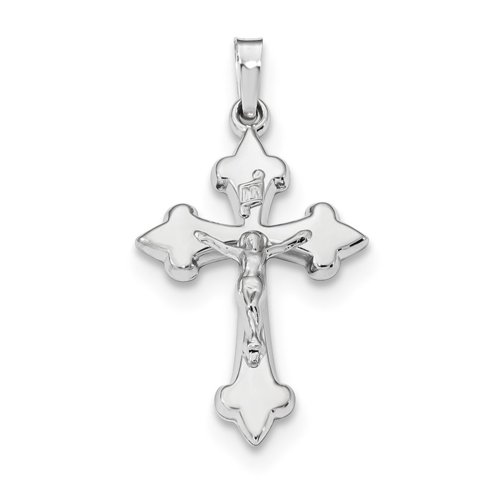 14k White Gold Polished Fleur de Lis Crucifix Pendant