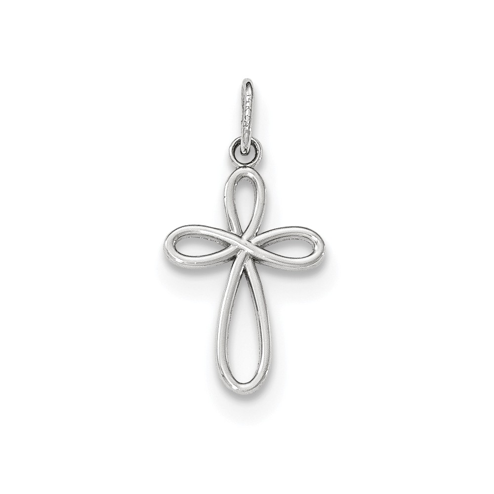 14k White Gold Polished Small Ribbon Cross Pendant