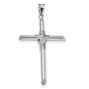 14k White Gold Polished Tube Cross Pendant