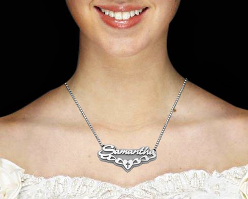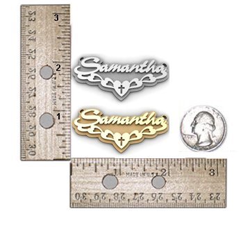 high polished script nameplate is available in Solid 14k White Gold