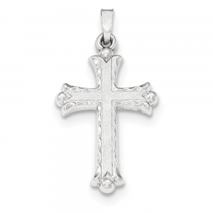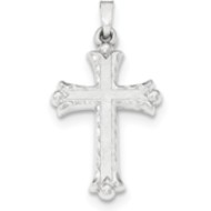 14K White Gold Textured and Polished Fleur de lis Cross Pendant