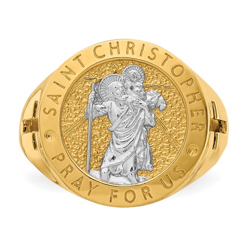 14K with Rhodium Saint Christopher Ring