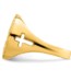 This Saint Christopher ring is made in 14K Yellow with St. Christopher Rhodium in 14K White Gold. The shank of the ring has a Cross cut out on both sides.