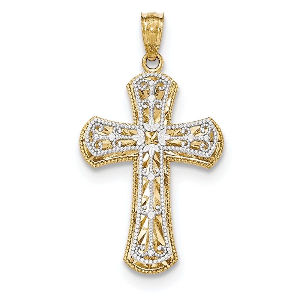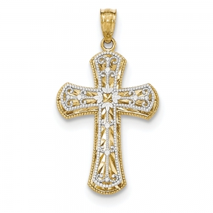 14k Y/W Gold Polished 2 Level Cross Pendant