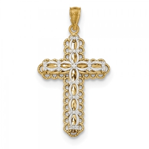 14k Y/W Gold Polished 2 Level Cross Pendant