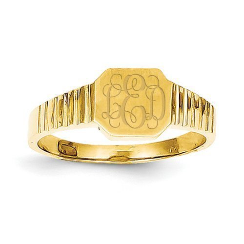 Solid 14kt Gold square signet ring with a unique design going down the band is the perfect gift for any young man. You can add a monogram or family crest to the top of the ring it can also be engraved on the inside band. It makes for the perfect gift for any special occasion.