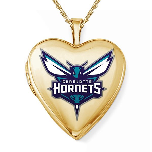 14k Yellow Gold Charlotte Hornets Heart Locket