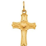 14K YELLOW GOLD CHILD'S CROSS PENDANT W/HEART