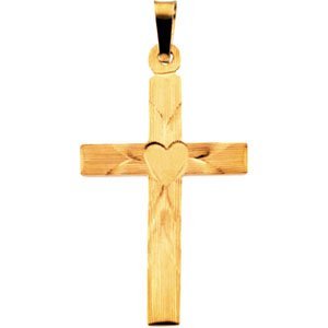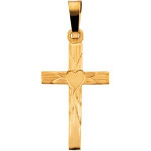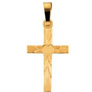 14K YELLOW GOLD CROSS PENDANT W/HEART