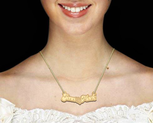 high polished & brush finished script nameplate is available in a Solid 14k Yellow Gold
