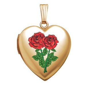 Solid 14K Yellow Gold Double Rose Heart Photo Locket