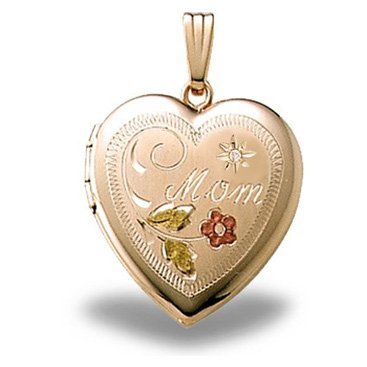 14k Gold Filled Mom Heart Photo Locket with Diamond