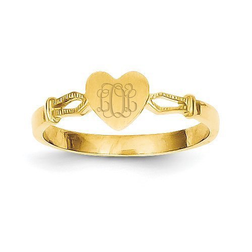 Solid 14kt Gold Heart signet ring with a unique design going down the band is the perfect gift for any young Girl. You can add a monogram or family crest to the top of the ring it can also be engraved on the inside band. It makes for the perfect gift for any special occasion.