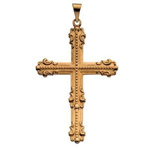 14K Yellow Gold LARGE FANCY CROSS PENDANT