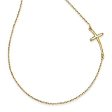 14k Yellow Gold Large Sideways Curved Cross Necklace