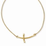 14K Yellow Gold Large Sideways Curved Twist Cross Necklace