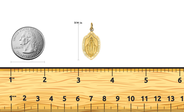 This 14K Gold medal was created after a nun (now Saint) was given a vision of this exact medal front and back. The back features an "M" surmounter by an cross with two hearts and tweleve stars. This is the most popular selling medal of all.