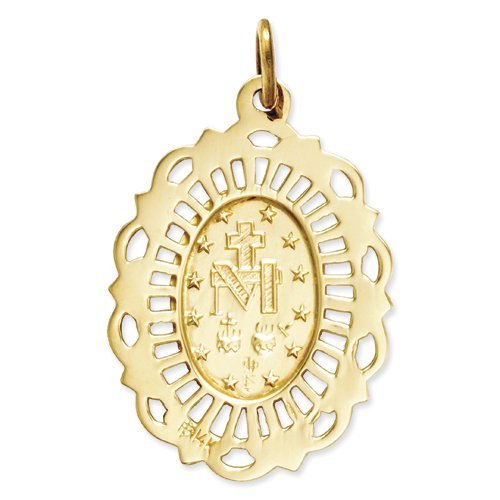 14K Yellow Gold Miraculous Medal Fancy Border Oval Pendant