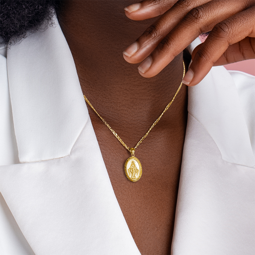 "I've purchased two Miraculous Medals from you at different times. Both times I've been highly satisfied. They came when expected and there were no hidden costs. Actually look so much better than pictures on site. No photo does jewelry any justice. The recent one I got was in sterling silver. I bought it for a friend for Mothers Day as she keeps admiring the one I always wear. Won't she be surprised. Thank you for your meticulous work in creating this fine jewelry."