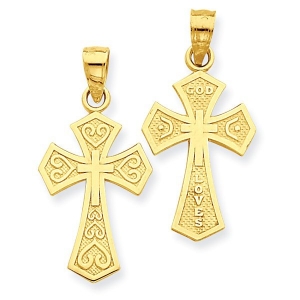 14k Yellow Gold Reversible "God Loves" Cross Pendant