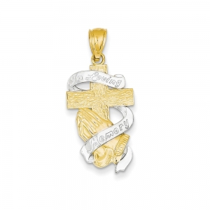 14k Yellow Gold Rhodium Plated In Memory of Cross