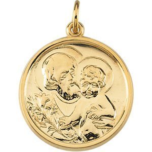 14K Yellow Gold Round Saint Joseph Religious Medal