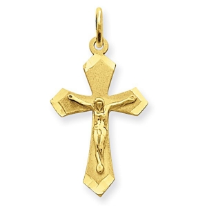 14k Yellow Gold Satin & Diamond-Cut Crucifix Charm
