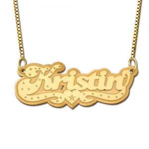 high polished & brush finished script nameplate is available in a Solid 14k Yellow Gold