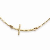 14K Yellow Gold Sideways Curved Textured Cross Necklace