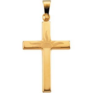 14K YELLOW GOLD SUNRISE CROSS PENDANT
