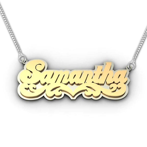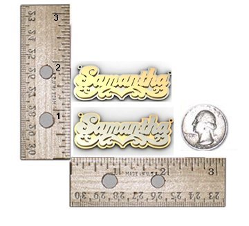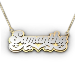 high polished script nameplate is available in a two toned Solid 14k White & Yellow Gold