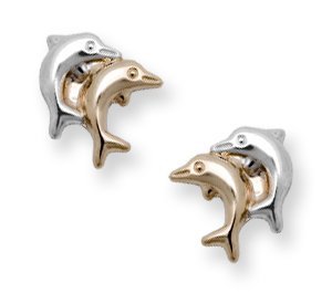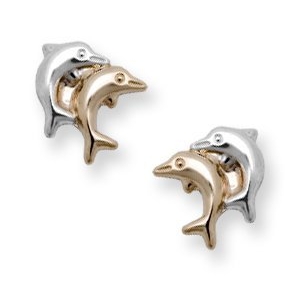 14KTwo Tone Gold Dolphins Children Post Earrings