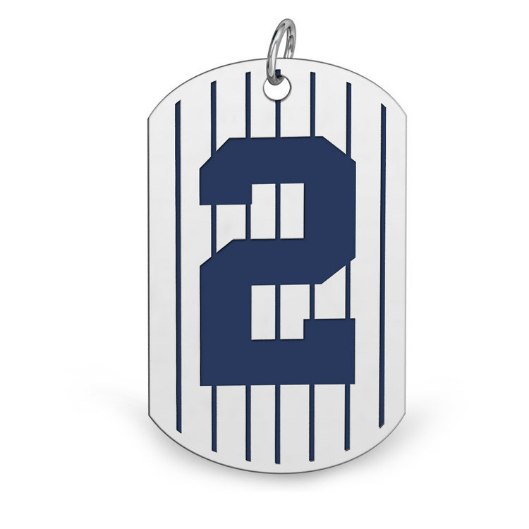 #2 Striped Dog Tag Pendant or Charm w/ Navy Blue Enamel