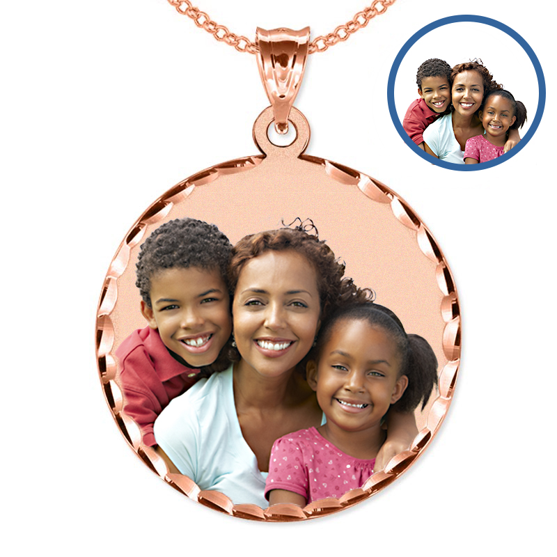 Your photo in full color permanently lasered onto your charm. This process being the most detailed. A protective jewelry enamel is added to every "color laser" pendant to ensure that every day your charm will look as beautiful as the day you took it out of the box.