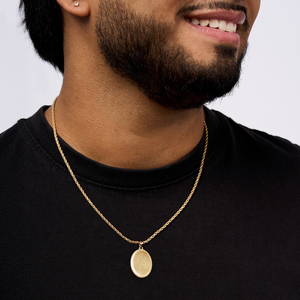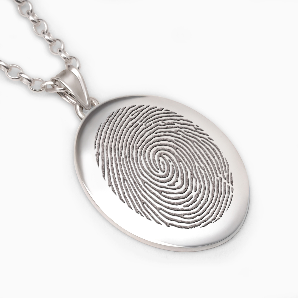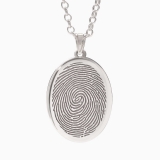 A beautifully crafted 3D oval pendant featuring a highly detailed fingerprint engraving. This elegant and timeless piece captures the unique ridges and patterns of a loved one's fingerprint, creating a deeply personal keepsake. Perfect as a sentimental gift or memorial piece for male or female, the pendant is available in various metals to suit your style. Complete with a smooth, polished surface and a comfortable feel, this 3D oval design is both meaningful and stylish.