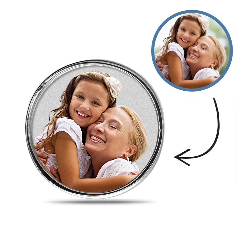 A:  Color Laser: Your photo in full color permanently lasered onto your charm. This process being the most detailed. We´ve had customers say, "My pendant actually looks better than the photo." A protective jewelry enamel is added to every "color laser" pendant to ensure that every day your charm will look as beautiful as the day you took it out of the box.